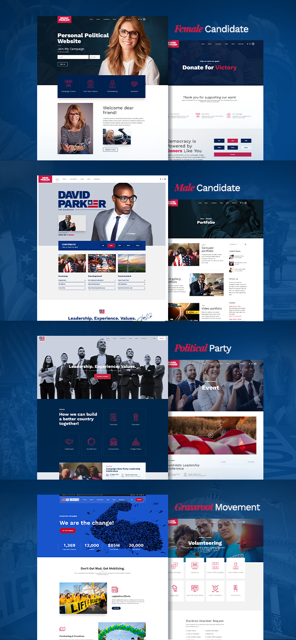 Event Management: Designed to showcase campaign trails, debates, and town halls with high-impact layouts.